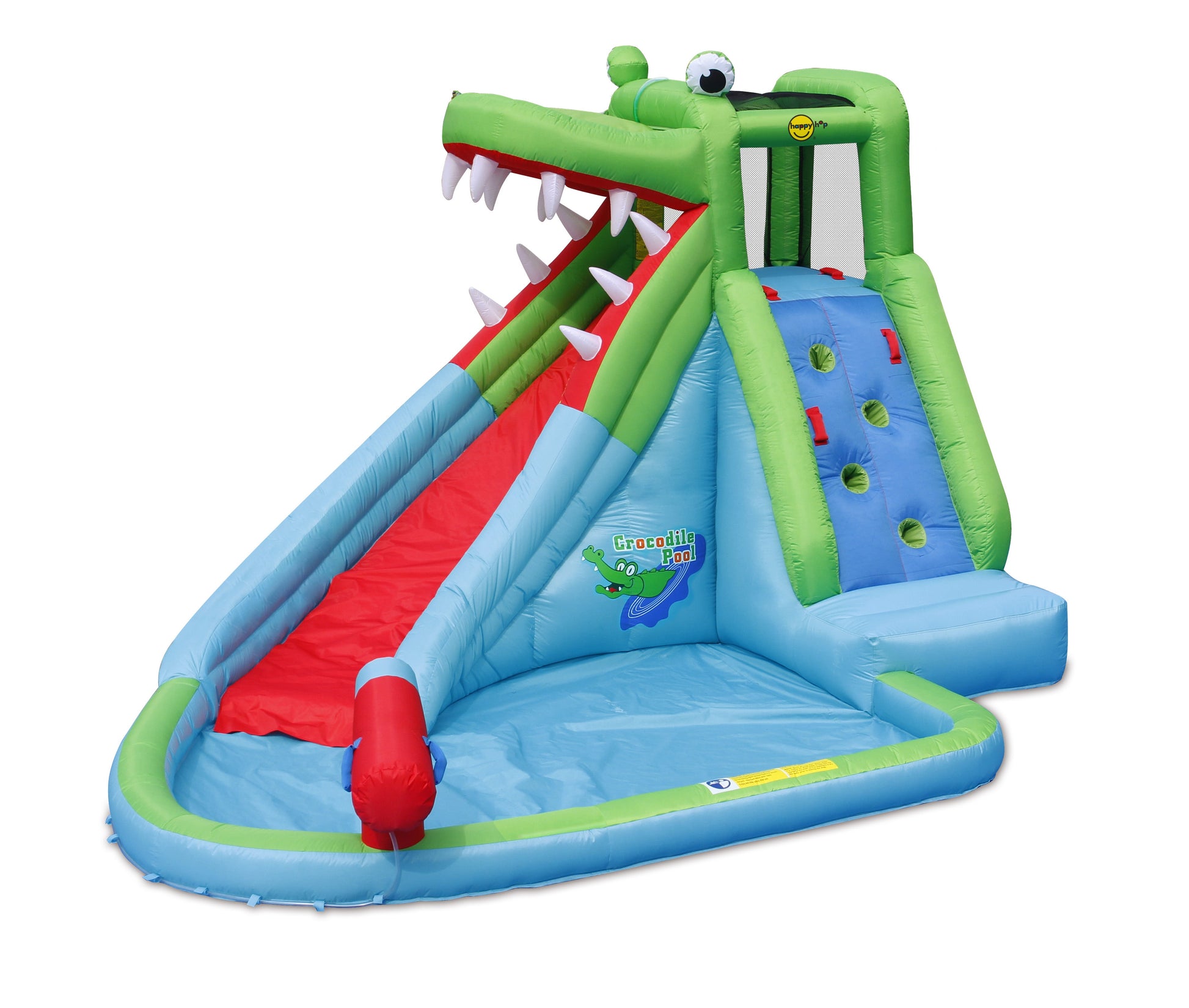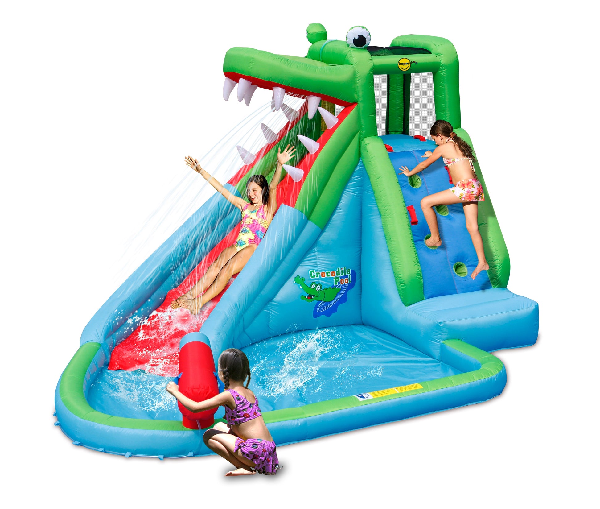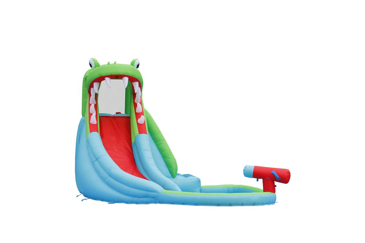 This Happy Hop Crocodile Pool is an awesome adventure and experience in the hot summer days. Equipped with tons of new features like our Water gun blaster, water slide, mini pool and rock-climbing feature. This inflatable crocodile pool is tons...