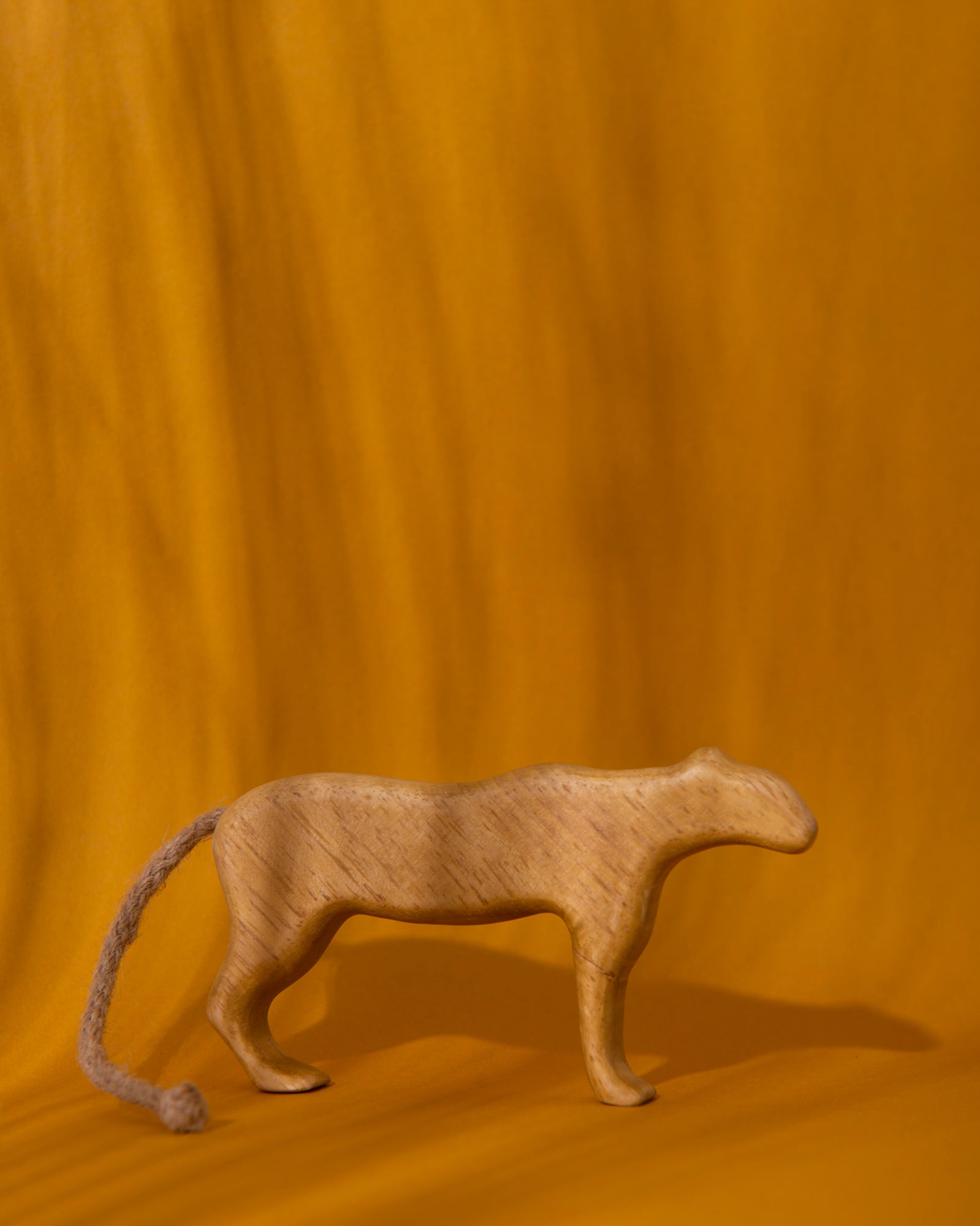 Shy, stealthy and quick, the Leopard is handcrafted in rubber wood. Our Leopard is 5" long, 3" tall (excluding the tail) Simple animal forms invite children to enter a world of imaginative play. Real life experiences and stories are re-played in play building...